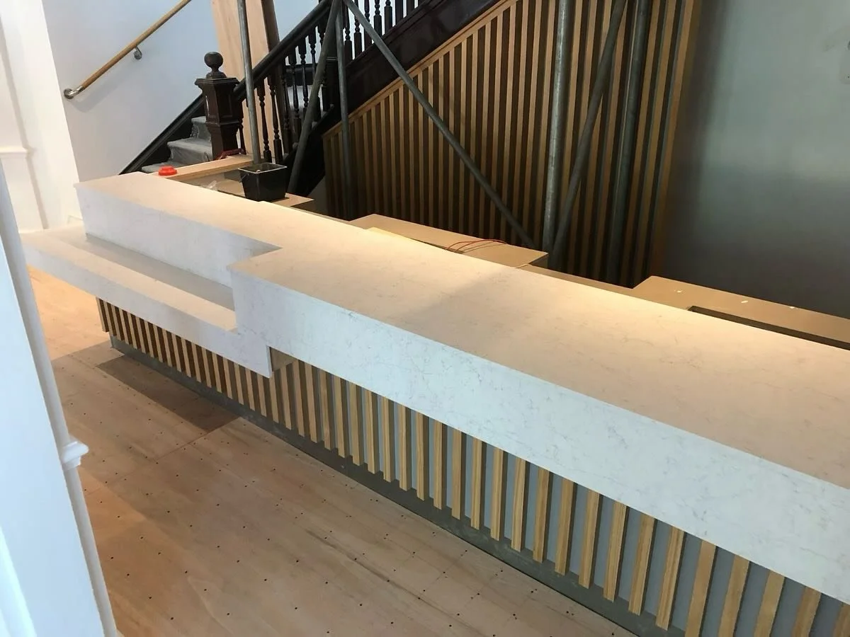 We supplied and installed the stone surfaces for the main reception counter, working to a detailed design with stepped levels and clean lines.
